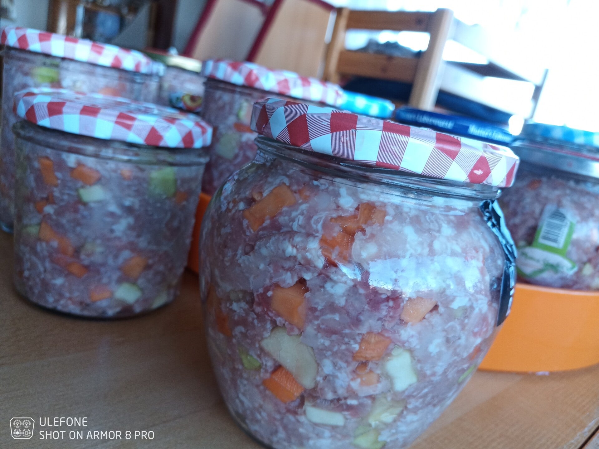 Seitdem ich dieses Nassfutter selber herstellen, freue ich mich jeden Tag aufs Öffnen des Glases. Endlich ein leckerer angenehmer, appetitlicher Geruch. Einfach nicht mit sonstigem Nassfutter zu vergleichen.