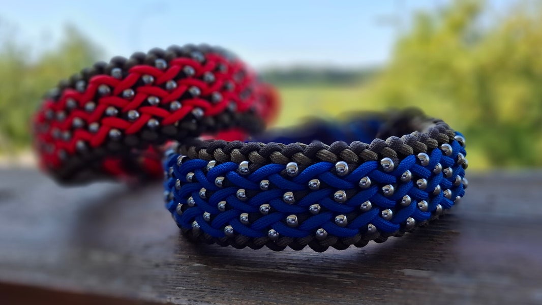 Ihr Milseburg-Halsband wird aus Paracord gefertigt. Dieses Material garantiert: Haltbarkeit und Komfort. Wir bieten verschiedene Oberflächentypen (glänzend oder matt).