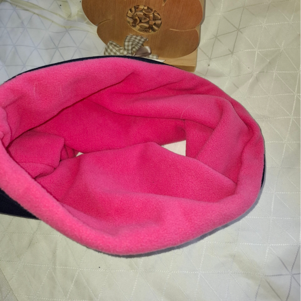 Gefertigt aus einem weichen Strickstoff außen und einem kuscheligen Fleece innen. Du kannst den Loop beidseitig Deiner Fellnase anziehen und somit den Look schnell ändern.