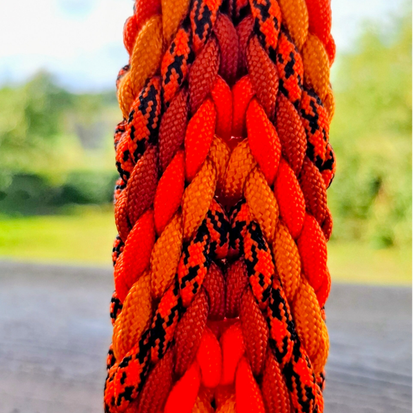 Dieses 3,5 cm breite Hundehalsband ist ein echter Hingucker und ideal für die kommende Herbstsaison. Gefertigt aus stabilem Paracord in wunderschönen Orangetönen, vereint es Sicherheit mit einem modernen Design.