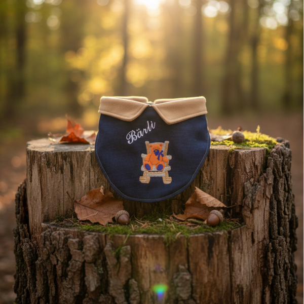 Dieses zaubernde Halstuch ist eine Hommage an die Kindheit und bringt Wärme und Nostalgie in den Alltag Deines Vierbeiners. Der Name "Bärli" und der Teddy auf dem Schaukelstuhl machen es zu einem unwiderstehlichen Accessoire.