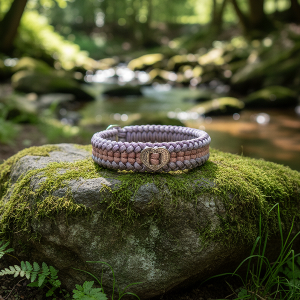 Dieses handgefertigte Unikat "Heideblüte" fängt die Magie der Rhöner Bergwiesen ein, wenn sie in sattem Lila blühen. Die Kombination aus kräftigem und sanftem Lilafarbenen Paracord, akzentuiert durch den liebevollen Herz-Slider, macht dieses Halsband zu einem emotionalen Hingucker. Es ist ein einzigartiges Accessoire, das die Verbundenheit zwischen dir und deinem Hund unterstreicht.