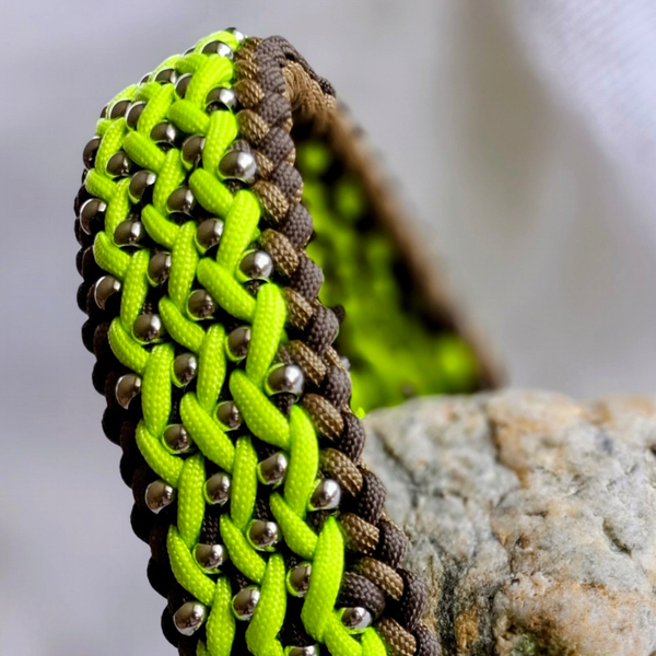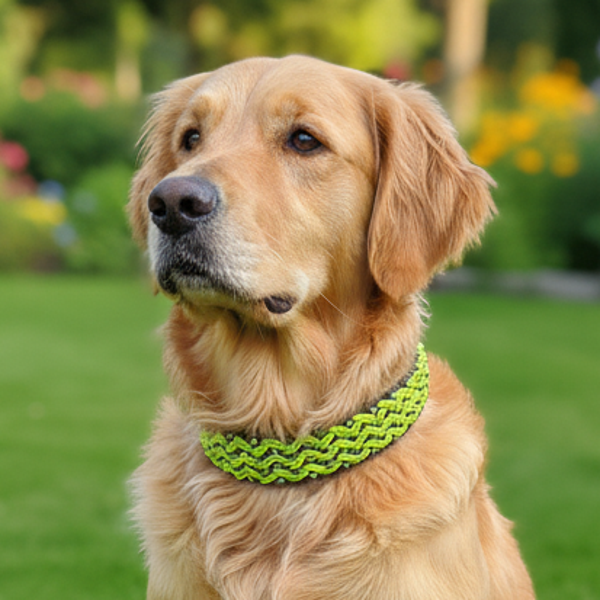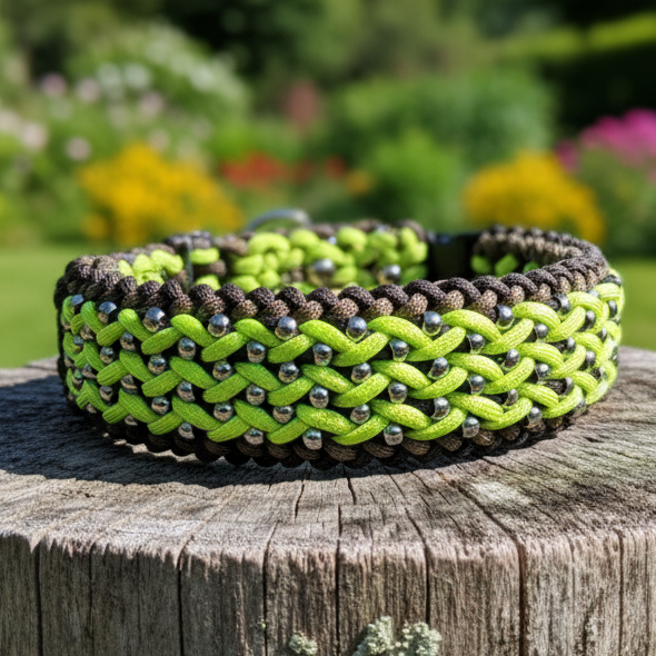 Das intensive Neongelb sorgt für beste Sichtbarkeit bei Dämmerung und im Wald. Ideal für aktive Rhön-Abenteuer. Das Halsband ist mit funkelnden Perlen verflochten, die das Licht reflektieren.