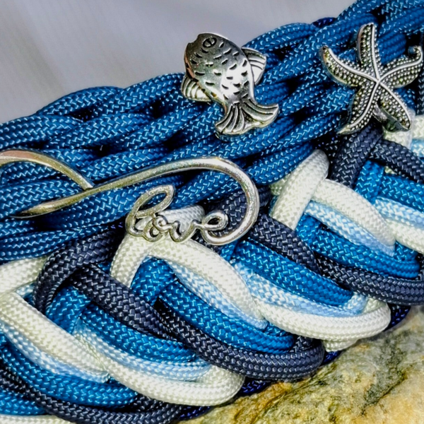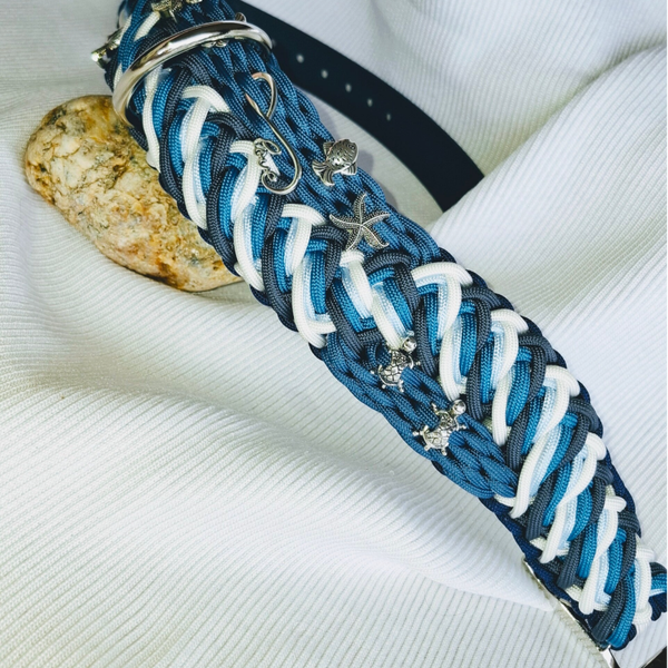 Urlaubsfeeling am Hals deines Hundes! Das aufwendige Unikat Ozeanwelle ist ein Meisterwerk der Flechtkunst.