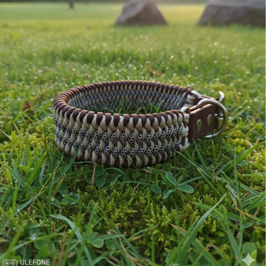Die Power-Flechtung vereint warme Braun-, Beige- und Naturtoene, die an Erde und Holz erinnern – ideal für einen zeitlosen Look. Durch die Extrabreite von 5 cm ist dieses Unikat besonders stabil und eignet sich hervorragend fuer extrem grosse Rassen. Es bietet höchsten Tragekomfort durch optimale Druckverteilung und ist ein kraftvolles Accessoire für den täglichen Einsatz.