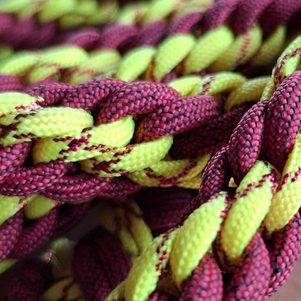 Dieses 2,60 m Unikat ist Dein zuverlässiger Begleiter für mittlere und lange Distanzen. Geflochten im dichten Guckaisee-Muster. Die Kombination aus tiefem Weinrot/Bordeaux und hellem Neongelb/Limette sorgt für einen sportlichen Look und beste Sichtbarkeit im Gelände.