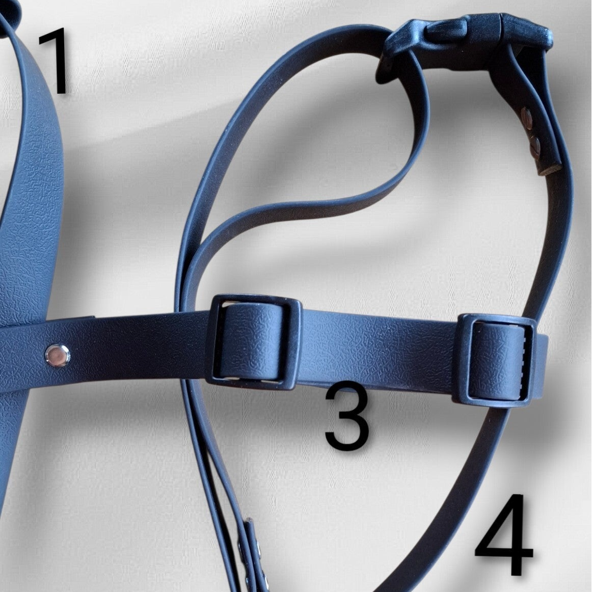 Echte Maßarbeit: Jedes Geschirr wird individuell in der Rhön gefertigt und bietet ca. 10 cm Verstellweg pro Gurt für die perfekte Passform.