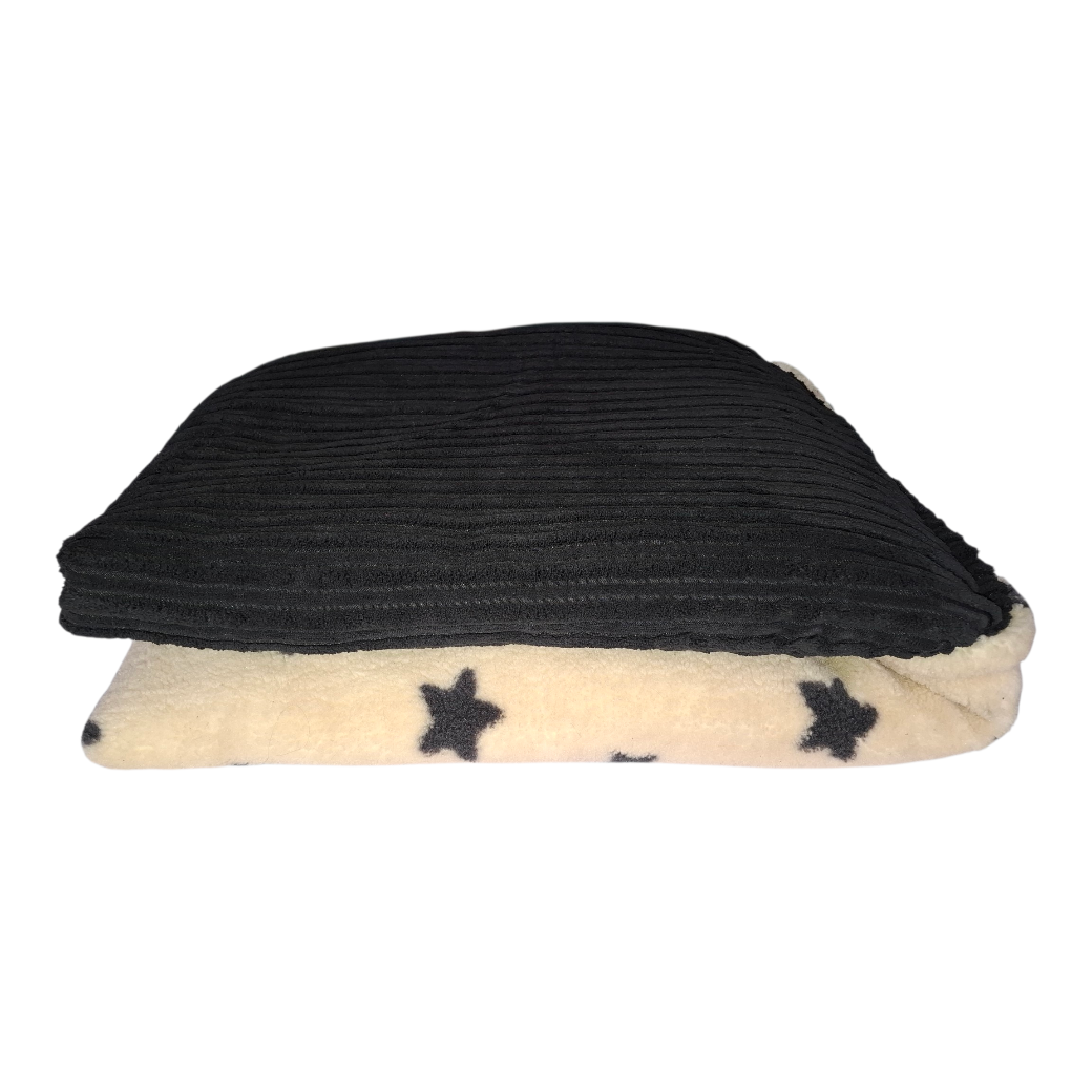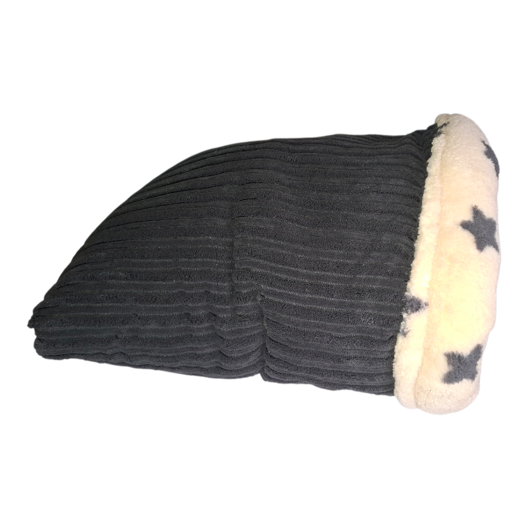 Material: Robuster grauer Breitcord (außen) und superweicher Sternen-Plüsch (innen). Das gesamte Set ist im Schonwaschgang waschbar.