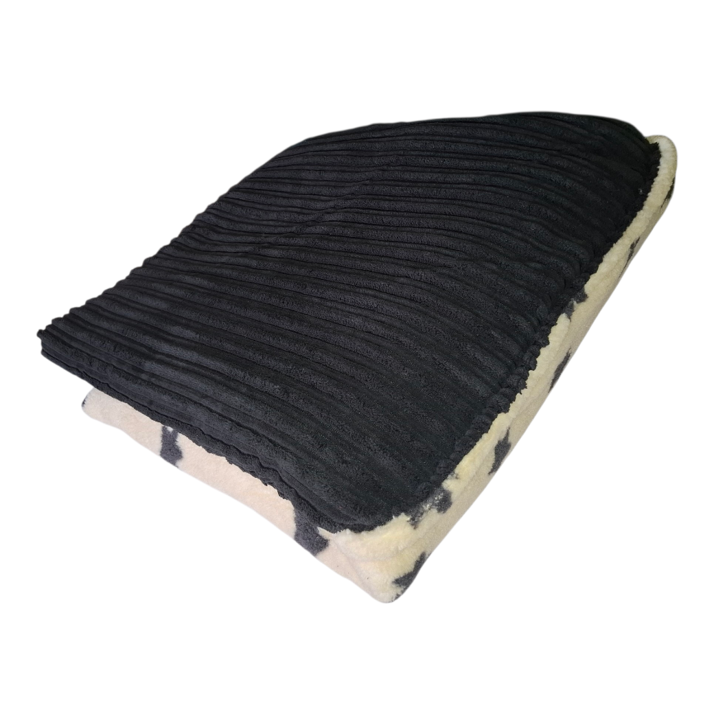 Gelenkschonend: Beide Lagen sind mit jeweils 2,5 cm Volumenvlies fest vernäht. Doppelt gelegt entstehen 5 cm weiche Polsterung – ideal für Senioren oder Hunde mit Gelenkproblemen.