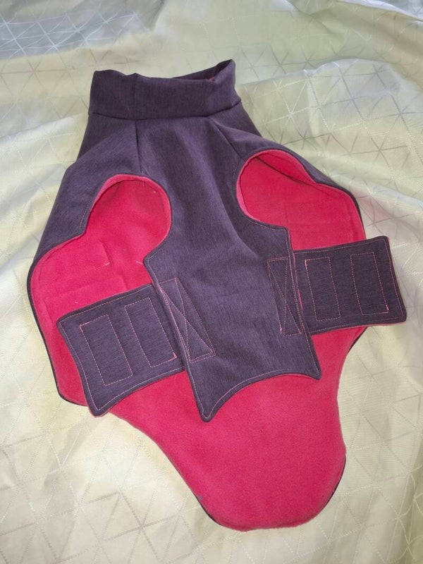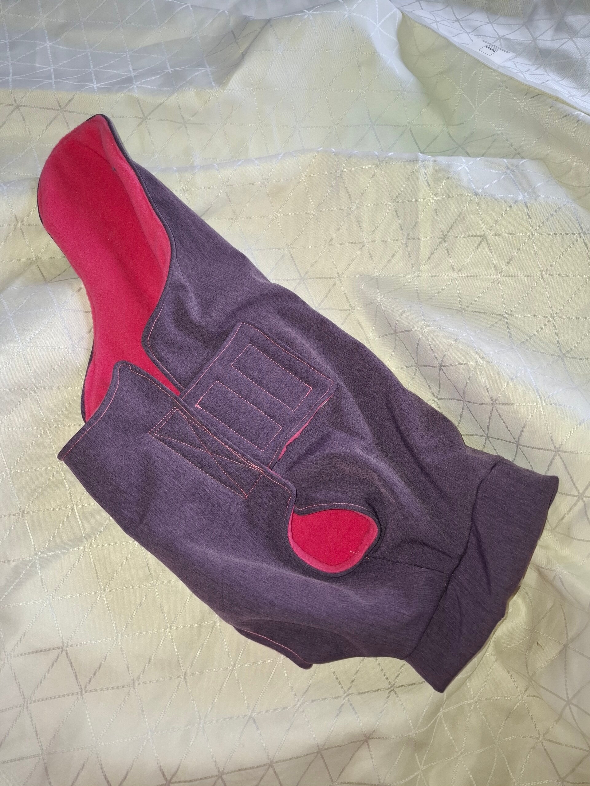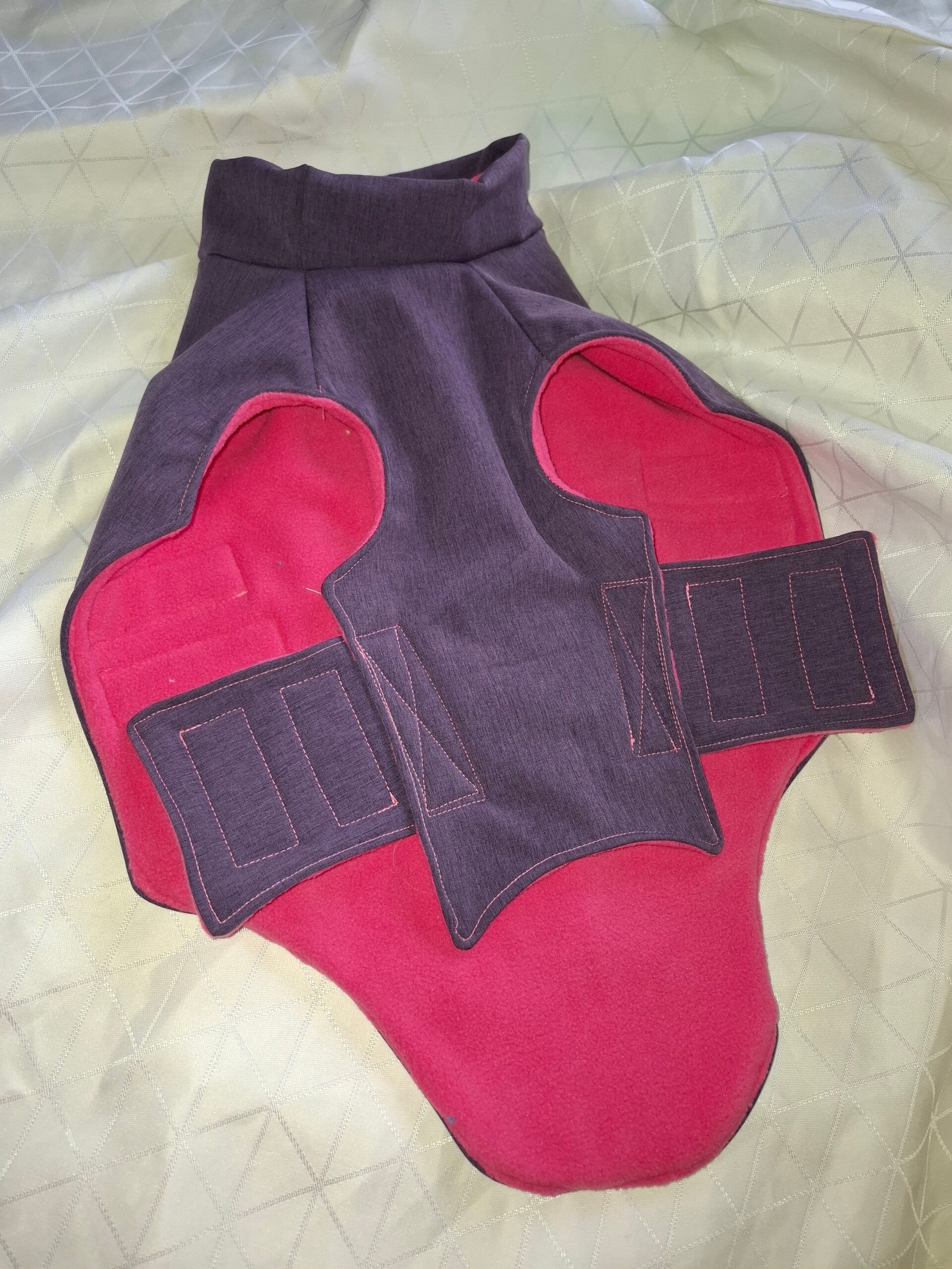 Dieses Mäntelchen ist perfekt für kühle Tage. Der Softshell schützt vor leichtem Wind, während das pinke Vlies im Inneren für die nötige Wärme sorgt. Ein funktionales und zugleich schickes Einzelstück, das zeigt, dass praktische Hundebekleidung auch richtig toll aussehen kann.