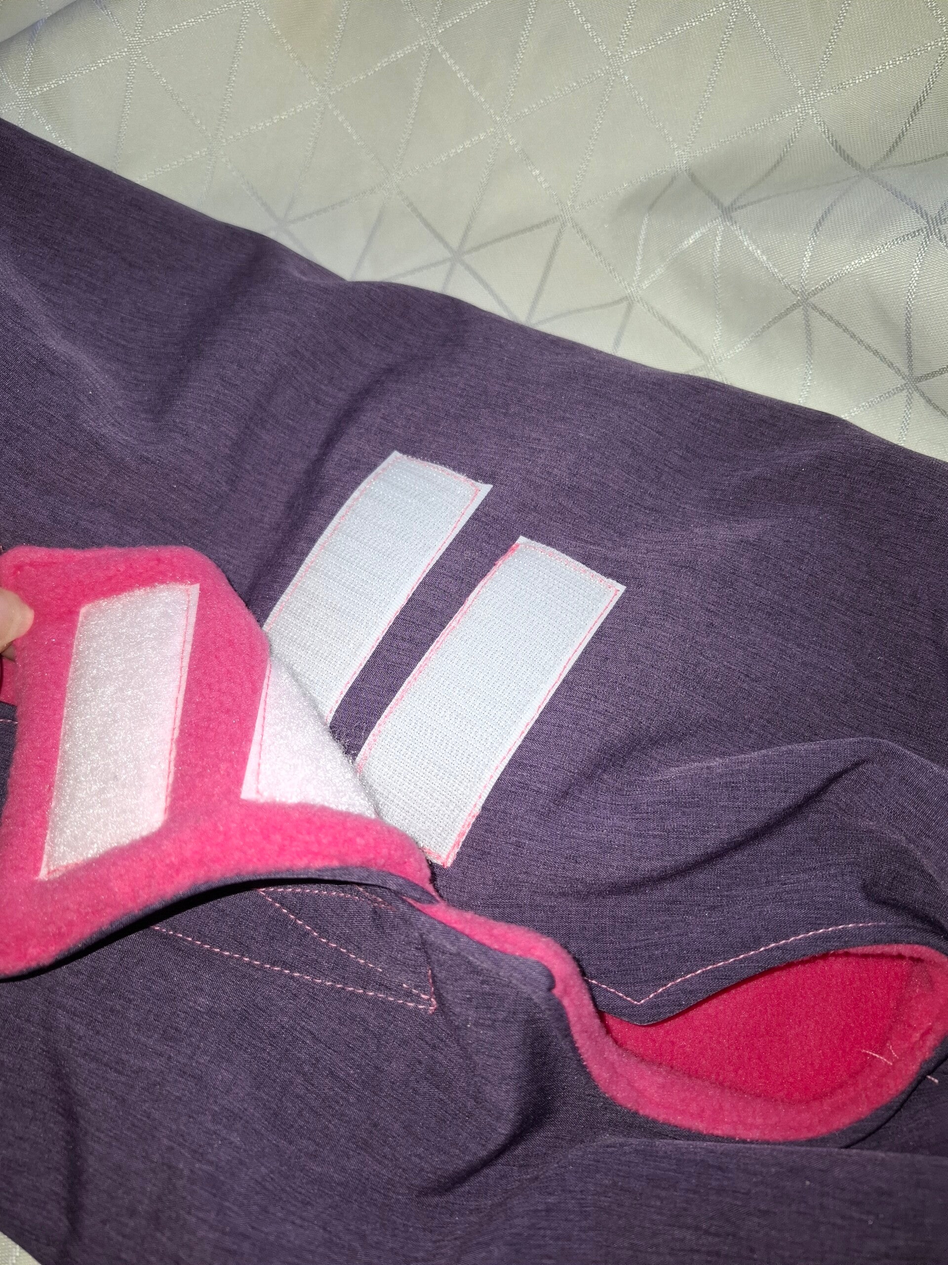 Material: Robuster, windabweisender Softshell in elegantem Lila (Außen) | Kuscheliges Fleece in leuchtendem Pink (Innen) – hält wunderbar warm.