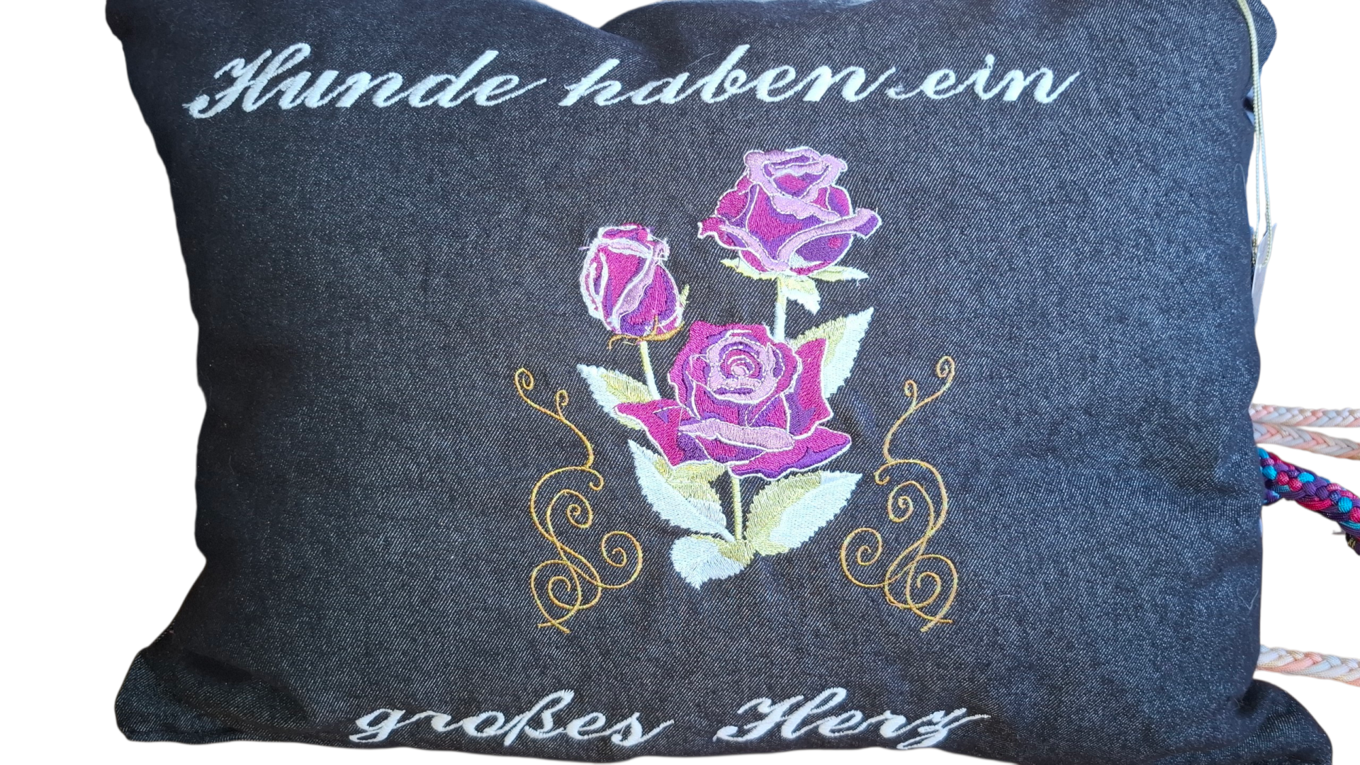 Das Prunkstück unserer Kollektion! Dieses großformatige Masterpiece-Kissen ist pure Stick-Kunst. Das prachtvolle, lila Rosenbouquet besteht aus zehntausenden präzisen Stichen und macht dieses Kissen zu einem luxuriösen Unikat, das in jedem Raum alle Blicke auf sich zieht.